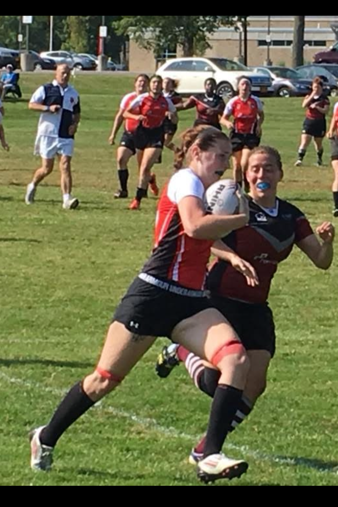 • Catie started playing rugby in high school with the Saratoga Mustangs for two years and continued playing at Plattsburgh State with the women's club team for four years as player, captain and president. When she's not on the field, she's in the classroom working as a second grade teacher.